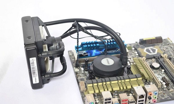 Abschließend wird die Pumpeneinheit mit dem CPU-Lüfteranschluss auf dem Mainboard verbunden sowie der Lüfter angeschlossen.