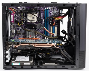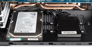 Abstriche müssen beim Einbau eines optischen Laufwerks gemacht werden. Verbaubar ist nur ein Slot-in-Laufwerk, welches die meisten Anwender nicht besitzen und daher separat erwerben müssen. Auch wenn dies optisch ansprechender aussieht, hätte bei der Größe des Gehäuses auch eine elegante Lösung für ein herkömliches 5,25″-Laufwerk geschaffen werden können.