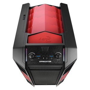 Mit den Xpredator Cubes erweitert Aerocool seine beliebte Gehäusereihe und stellt die Möglichkeit in den Fokus, sehr kräftige Kleinstsysteme mit Mini-ITX- oder Micro-ATX-Mainboard als Herzstück zu bauen. Diese können entweder per massiv gutem Aircooling oder mittels üppiger Wasserkühlung auf Temperatur gehalten werden. Das Design des Cubes liegt ganz auf der Linie der Xpredator-Serie mit der markanten Mesh-Frontpartie, dem I/O-Panel mit zwei USB-3.0-Ports und zwei Lüftersteuerungs-Drehknöpfen sowie den keilförmigen Lüftungsklappen im Deckel.