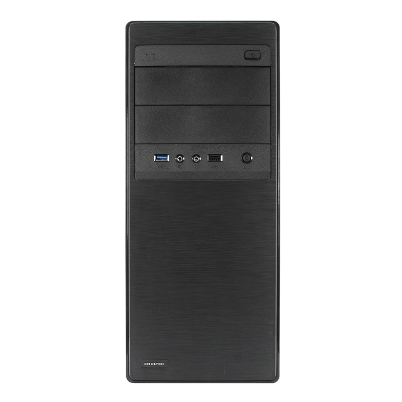 Am Panel des Cooltek X4 stehen als Ports jeweils einmal USB 2.0 / 3.0 sowie HD-Audio zur Verfügung. Ins Innere passen Grafikkarten mit maximal 275 mm Länge und CPU-Kühler mit maximal 145 mm Höhe. Mainboards in den Formaten ATX bzw. M-ATX werden ebenfalls von diesem Midi-Tower aufgenommen.
