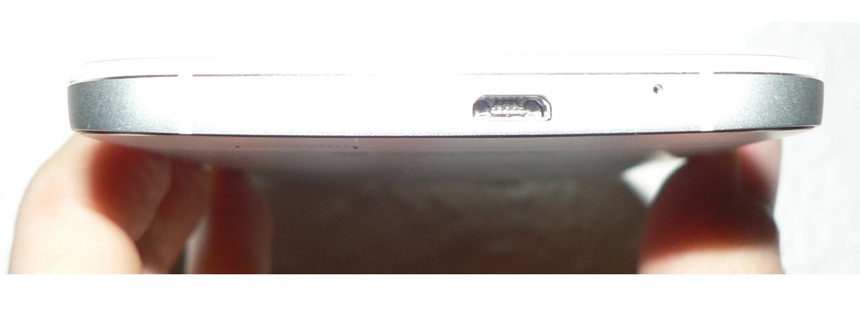 Etwas unglücklich ist die Platzierung der Buttons: Auf der rechten Seite finden sich sowohl ganz oben der Lautstärkeregler als auch darunter der Power-Button. Darunter wiederum finden sich die Abdeckungen für microSD- bzw. SIM-Karte. Jene sitzen übrigens bombenfest und unterstreichen den noblen Eindruck vom Gehäuse. Während sich auf der rechten Seite quasi die geballte Ladung an Funktionen sammelt, bleibt die linke Seite des Huawei Ascend G7 frei.