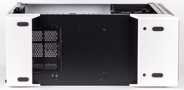 Das linke Seitenteil besitzt das angesprochene Fenster, das rechte Seitenteil ist dagegen komplett clean. Beide Teile besitzen Öffnungshilfen und wurden mit Thumb-Screws verschlossen.