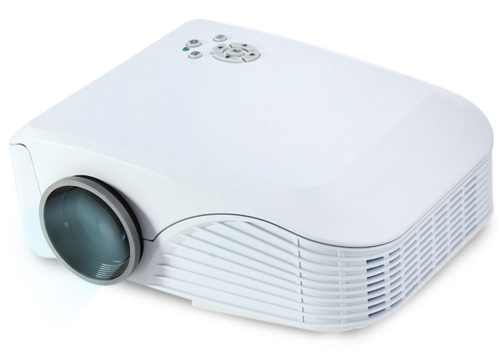 Es folgt der noch etwas preisgünstigere GP8S Mini EMP für regulär 42,76 Euro. Derzeit ist das Gerät jedoch mit dem Coupon „GBGP8S“ bereits für 40,60 Euro bei GearBest aus China inkl. Versandkosten bestellbar. Auch hier sollte man noch 19 % Einfuhrumsatzsteuer im Kopf behalten. Zur Ausstattung gehört eine Auflösung von 480 x 320 Bildpunkten, zweimal die Schnittstelle HDMI, USB und ein Kartenslot. Die Helligkeit beträgt 100 Lumen. Auch dieser Projektor kann Inhalte sowohl in 4:3 als auch 16:9 projizieren. Dateien von USB-Medien oder Speicherkarten lassen sich in folgenden Formaten abrufen: JPEG, BMP, GIF, PNG, TIF (Bilder); MP3, WMA, AAC, FLAC, APE (Audio); RMVB, RM, AVI, WMV, FLV (Video).