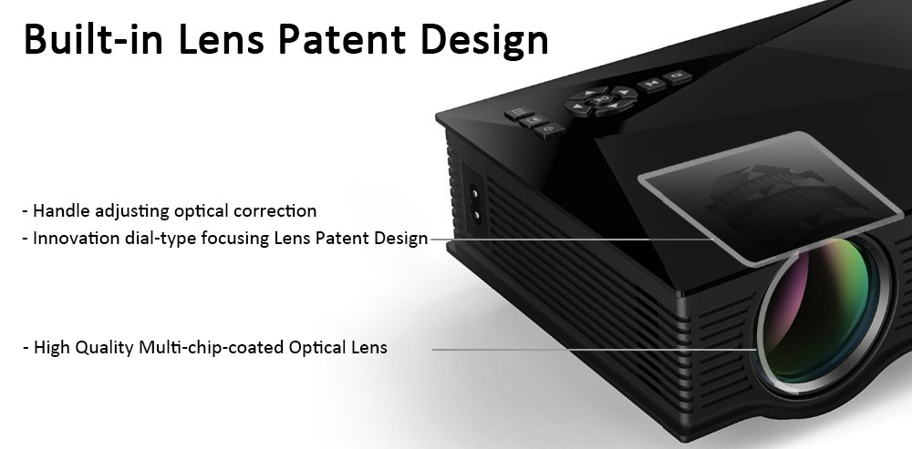Beim Unic UC46 Mini Projektor handelt es sich um ein recht preisgünstiges Modell, das mit kompakten Maßen von 200x151x90 mm Käufer überzeugen soll. Zwar liegt die native Auflösung nur bei 800×480 Bildpunkten, der Beamer projiziert aber auch 1080p-Inhalte. Jene werden dann herunterskaliert. Der Kontrast des Geräts liegt bei 800:1, während sich die maximale Helligkeit bei 1200 Lumen einpendelt. Dank des Anschlusses für USB 2.0 lassen sich am Beamer auch Smartphones und andere mobile Endgeräte aufladen.