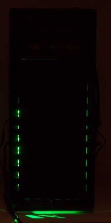Die grüne Beleuchtung der Front lässt sich über einen Schalter im Top ein- und ausschalten, so dass jeder Anwender selber entscheiden kann, ob er das Feature nutzen möchte. Die Beleuchtung empfanden wir als ausreihend hell, sie dient aber nur dem Design und bietet ansonsten keinen Mehrwert.