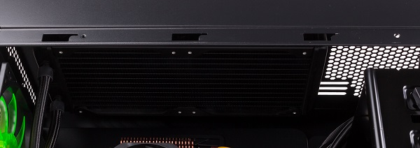 Ein 240er Radiator fand spielend Platz unter dem Top, was kein Wunder ist, da dort auch ein 360er Modell Platz finden soll. Für Lüfter an dem Radiator steht ebenfalls noch ausreichend Platz zur Verfügung. Je nach Modell muss dafür aber der 5,25″-Laufwerkskäfig entfernt werden.