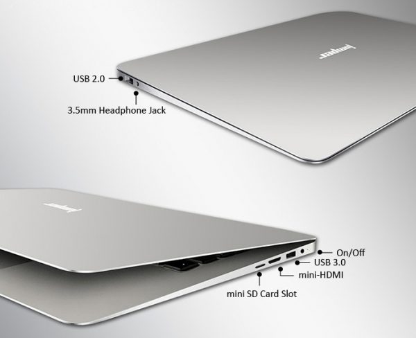 Was für ein Notebook dieser Preisklasse eher unüblich ist: Das Jumper Ezbook 2 kommt sogar mit einer Gehäuserückseite aus Aluminium daher. Im Lieferumfang ist neben dem Notebook selbst noch ein Netzteil enthalten. Das Jumper Ezbook 2 misst 34,65 x 22,95 x 1,76 cm. Als Gewicht sind 1,18 kg genannt. Auf ein optisches Laufwerk muss man bei diesem Ultrabook zwar verzichten, dass ist für diese extrem kompakten Notebooks jedoch auch so üblich.