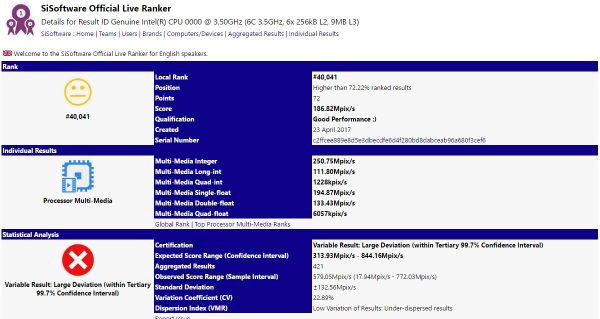 Der in der Benchmark-Datenbank von SiSoftware gelistete Intel-Prozessor mit sechs Kernen verfügt über insgesamt 1,5 MByte Level-2 Cache (die üblichen 256 KByte pro Kern) und 9 MByte L3-Cache. Als Basistakt für diesen Prototypen werden 3,5 GHz angegeben, Infos zum Turbotakt gibt es dagegen keine.