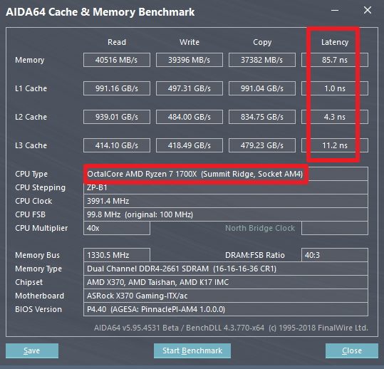 Vergleicht man Ryzen 7 1700X und den lediglich als „zukünftigen Prozessor“ bezeichneten Ryzen 7 2000 im Systemprogramm AIDA64, so ist die kommende CPU 11 Prozent schneller bei den Speicherlatenzen und sogar 30 bzw. 16 % schneller bei den Tests der Level-2 und Level-3 Cache-Performance.