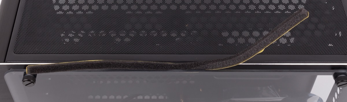 Mitgeliefert werden vier klebbare Staubfilter für jede Seite, um auch dort dem Staub keine Chance zu lassen. Grundsätzlich eine gute Idee, die schöne Optik des Gehäuses wird damit aber zerstört. Direkt anliegende Glasseitenteile hätten wir daher bevorzugt.