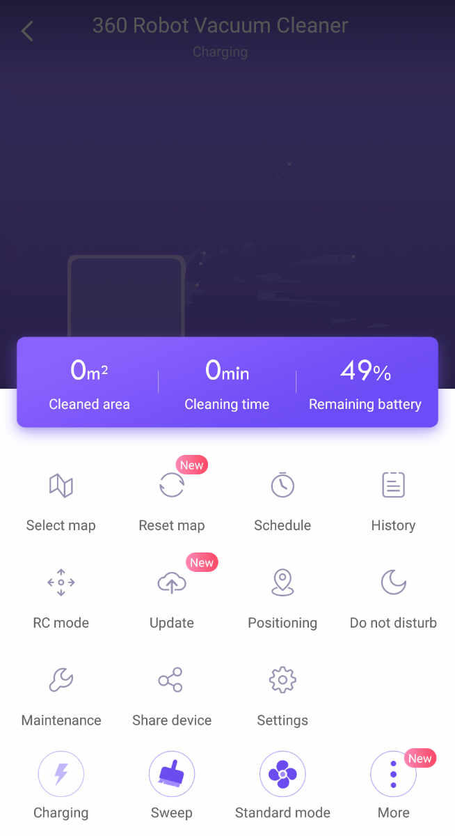 Die App „360 Smart“ bietet dann die Möglichkeit, die Saugkraft des Roboters auf 800, 1300 oder 1800 pa zu regeln, was natürlich auch die Lautstärke entsprechend senkt bzw. erhöht. Außerdem kann man hier die Arbeitszeiten planen, den Akkustand einsehen, gespeicherte Karten betrachten und auch die Benachrichtigungen konfigurieren. Wer seinen Roboter in der zugestellten Wohnung vermisst, kann ihn auch veranlassen „I am here“ zu rufen. Zudem ist es möglich, den 360 S6 selbst über die App zu lenken. Auch lassen sich hier beispielsweise Uhrzeiten festhalten, in denen der Staubsauger nicht auf Tour gehen darf.