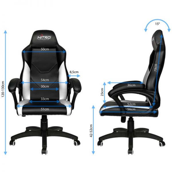 Die Stuhlrollen verfügen neben einem harten Nylonkern über einen weichen Polyurethanüberzug, wodurch der Gaming-Stuhl sowohl auf harten als auch auf weichen Böden problemlos einsetzbar ist – ein echtes Multitalent also. Die maximale Belastung des Nitro Concepts C100 liegt dank der langlebigen Gasdruckfeder der Klasse 4 bei 120 kg.