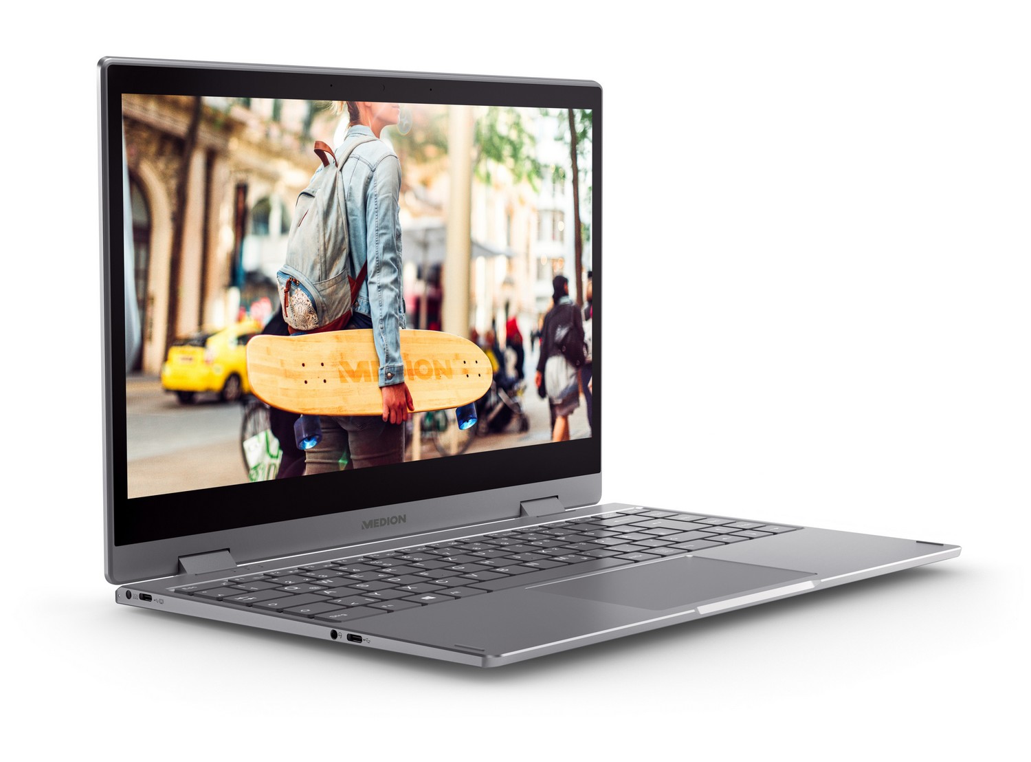 Essen, 16. September 2019 – Mit dem MEDION E4272 ist ab 26. September für nur 349 Euro ein flexibles MEDION Convertible mit Aluminium-Gehäuse(1) in allen ALDI SÜD-Filialen erhältlich. Dank vier verschiedener Modi (Notebook-, Stand-, Tablet- und Zelt-Modus) bietet das Convertible maximale Flexibilität für jeden Anwender.