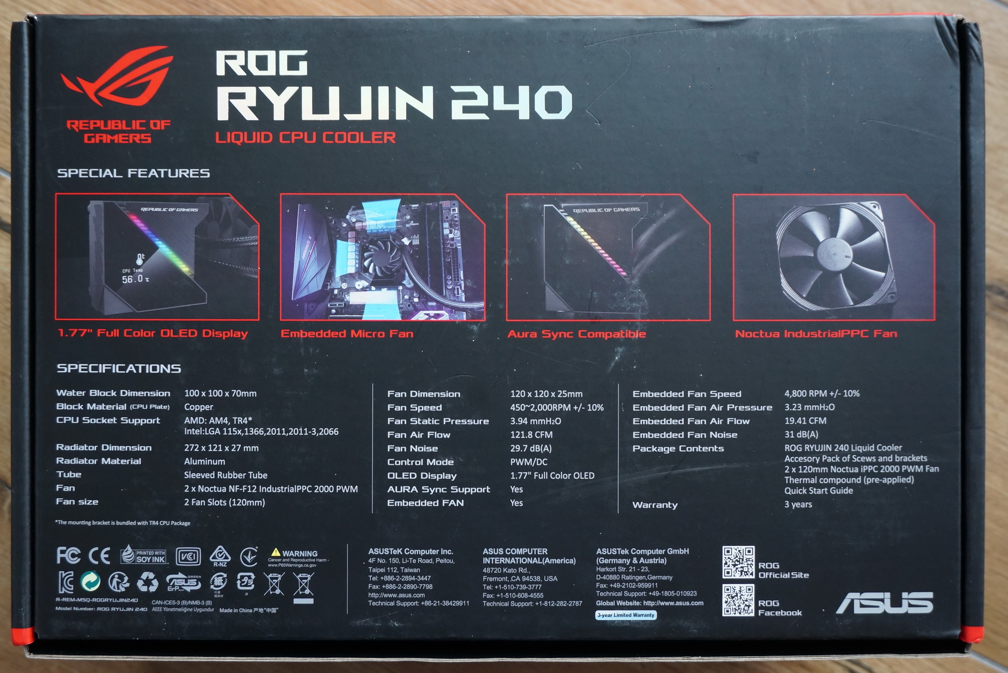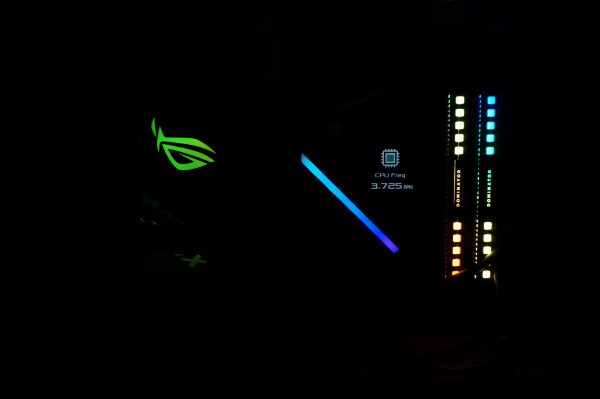 Klares Alleinstellungsmerkmal der Wasserkühlung ist das OLED-Display, welches über eine ASUS Software diverse Parameter wie Lüftergeschwindigkeit, CPU-Temperatur oder CPU-Frequenz anzeigen kann. Schade ist jedoch, dass Parameter der Wasserkühlung wie Eingangs- und Ausgangs-Temperatur nicht erfasst und dargestellt werden können. Außerdem wurde die notwendige ASUS Software in Far Cry 5 als Cheat-Tool erkannt und verhinderte den Start dieses Spiels.