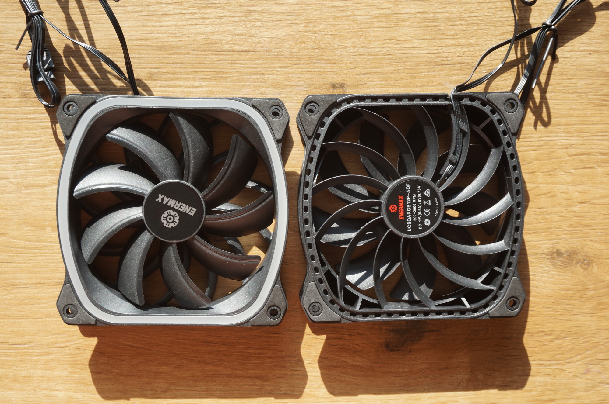 Die Enermax Aquafusion 240 ist – was die Kühlung angeht – stark mit der ASUS ROG Ryujin 240 verwandt. Was offensichtlich fehlt ist das OLED-Display und beim Preis die vorderste Ziffer. Mit knapp 90 Euro ist die Enermax gut 100 Euro günstiger. Dafür spart Enermax an den Lüftern. Die sind mit maximal 1500 UPM langsamer als die Noctua-Lüfter der ASUS-Wasserkühlung und dennoch hörbar lauter.