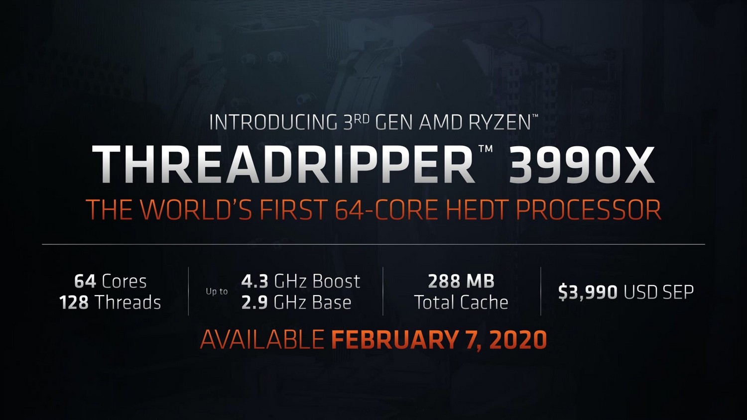 Im November hatte AMD den Ryzen Threadripper 3990X offiziell für dieses Jahr angekündigt, aber damals weder Taktraten noch Preis genannt. Dies hat AMD zur CES in Las Vegas nun nachgereicht und gleichzeitig versprochen, dass diese 64-Kern-CPU ab 7. Februar erhältlich sein wird. Der 3990X wird mit 3990 US-Dollar doppelt so teuer wie der Threadripper 3970X mit 32 Kernen.