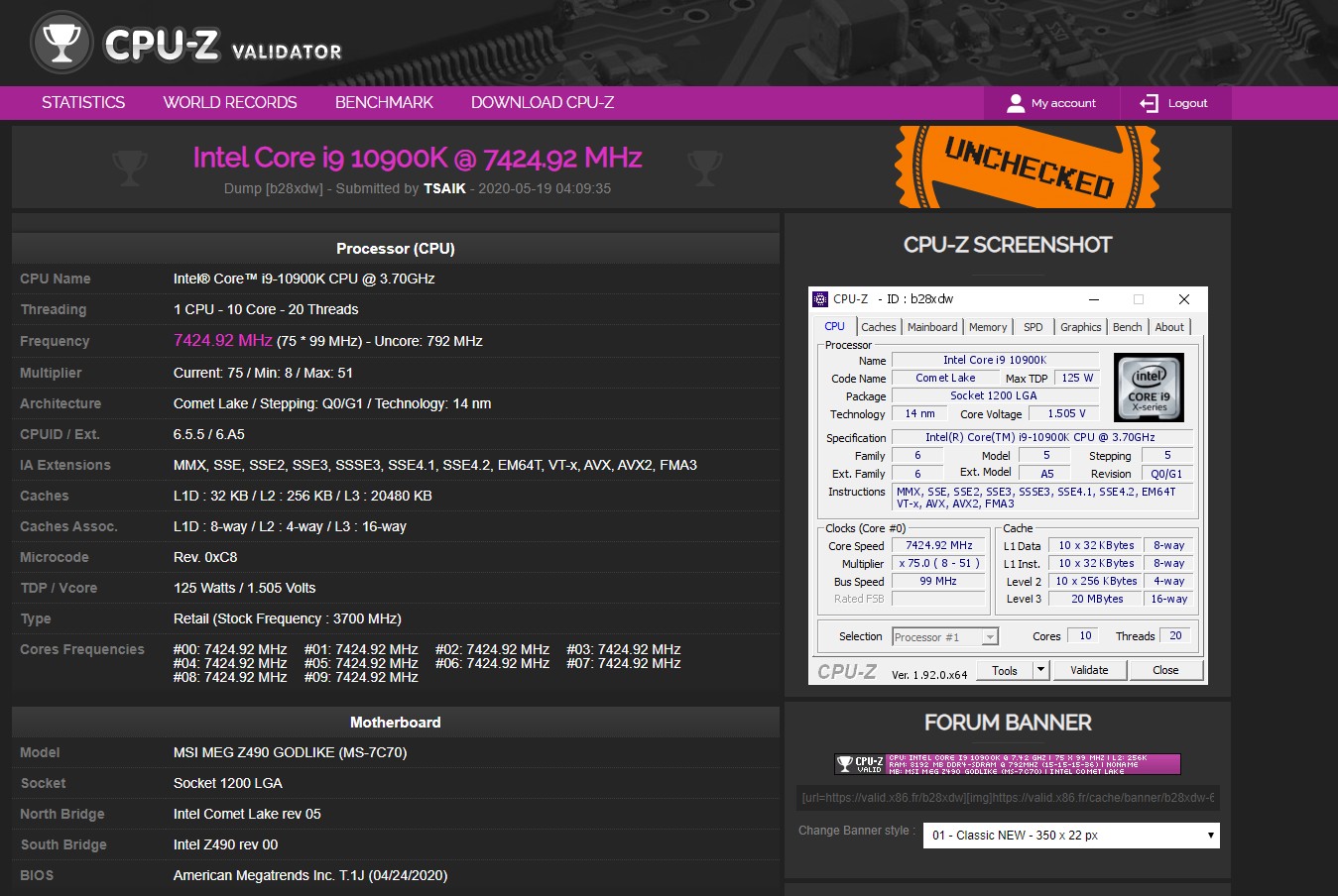 In diesem Jahr ist es mit dem MEG Z490 GODLIKE und der Intel Core i9-10900K CPU gelungen, unter Einsatz von LN2 eine atemberaubende Performance mit einer Frequenz von 7.42 GHz auf allen Kernen zu erreichen.