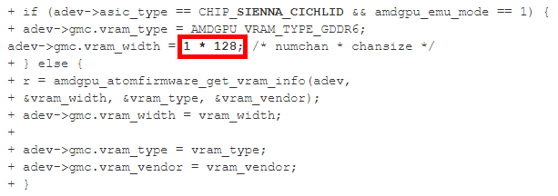 Bei näherer Betrachtung des Linux-Patches stellt sich allerdings heraus, dass die nach einem Buntbarsch benannte AMD „Sienna Cichlid“ GPU lediglich über eine 128 bit breite Speicherschnittstelle verfügt, was eher auch eine Mittelklasse-Grafikkarte denn ein Topmodell hindeutet. Die bisherigen Radeon RX 5700 ‚Navi‘ Grafikkarten können nämlich bereits auf ein deutlich breiteres 256-bit RAM-Interface zugreifen. Immerhin soll „Sienna Cichlid“ aktuellen GDDR6-Grafikspeicher bieten.