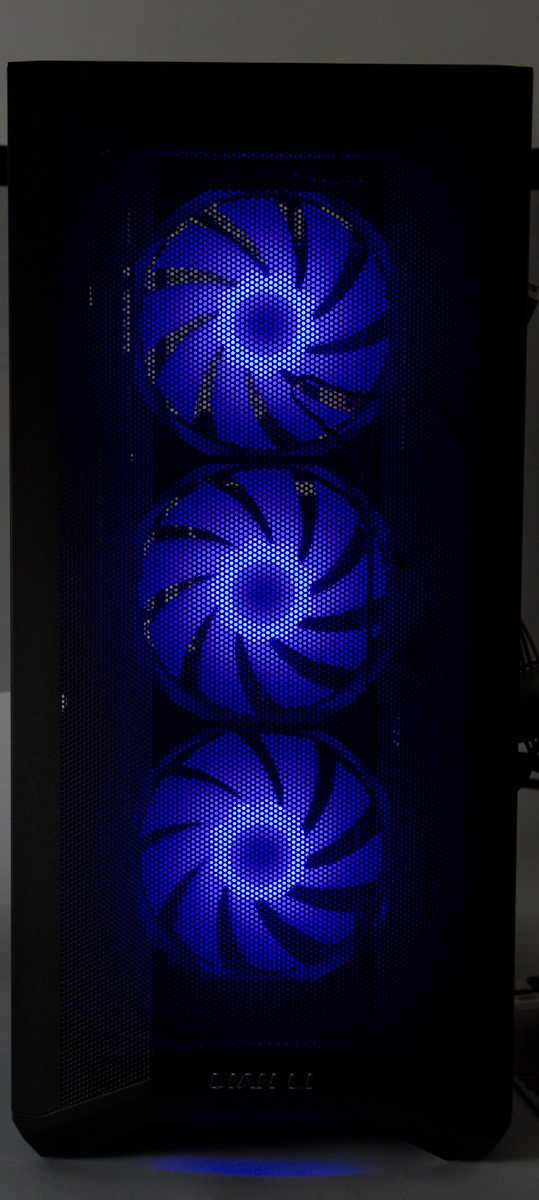Die Beleuchtung der Lüfter wird per SATA-Stromstecker betrieben und kann per Mainboard oder über die Tasten am Gehäuse gesteuert werden.