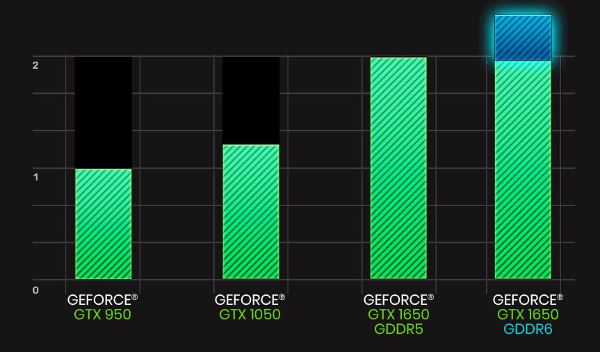 The GeForce® GTX 1650 KO with GDDR6 follows in the tradition of the GeForce® GTX 650, GeForce® GTX 750, GeForce® GTX 950 and GeForce® GTX 1050 of offering performance for the fastest contemporary titles that you can throw at the card. Enjoy up to 70% higher performance when compared to the GeForce® GTX 1050 and up to 3x the performance of GeForce® GTX 950. GeForce® GTX 1650 is a performance breakthrough for E-Sports and 1080p gamers.
