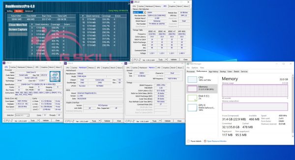 Now available with a larger kit capacity of 32GB (16GBx2), the highly optimized DDR4-4000 CL16-19-19-39 memory specification is an ideal performance upgrade for PC builds intended for gaming and content creation. Optimized with the latest 10th Generation Intel® Core™ processors and Intel Z490 chipset platform, this new memory kit can be seen validated on the ASUS ROG MAXIMUS XII EXTREME, MSI MPG Z490 GAMING PLUS, and ASRock Z490 AQUA motherboards with the Intel® Core™ i9-10900K, i7-10700K, and i5-10600K processors, respectively, in the screenshots below.