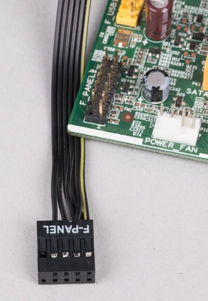 Die F-Panel Anschlüsse im NZXT H510 Elite werden in einem gebündelten Stecker geliefert, was bei kompatiblen Boards das lästige Nachschlagen im Handbuch des Mainboards erspart. Passt der Stecker nicht, so wie bei unserem älteren Mainboard, liegt im Lieferumfang ein Adapter bei, um die einzelnen Funktionen auch einzeln mit dem Mainboard zu verbinden.