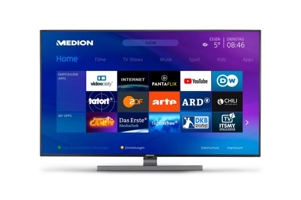 Essen, 12. Oktober 2020 – Die neue TV-Linie von MEDION besticht mit gewohnter Qualität und zeigt, dass MEDION großen Wert auf anspruchsvolles Design legt. So garantieren die Geräte der neuen Linie an Smart-TVs nicht nur eine bessere Abbildung unterschiedlicher Inhalte durch Unterstützung aktueller Technologien wie MEMC (Motion Estimation and Motion Compensation) und Micro Dimming, sondern überzeugen durch eine äußerst zeitgemäße Ästhetik.