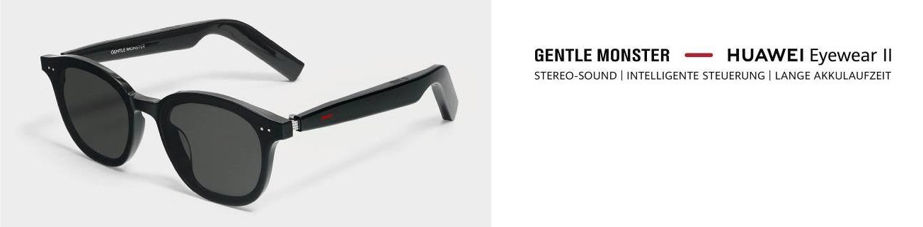 Die beiden Sonnenbrillen der Gentle Monster X HUAWEI Eyewear II Smart Glasses sind ab sofort zu einer UVP von jeweils 329 Euro im Handel und im Online-Store von HUAWEI erhältlich. Die zwei Modelle mit transparenten Gläsern sind ab Ende November für 299 Euro beziehungsweise die Brille mit Aluminiumgestell für 329 Euro verfügbar. Wer eine der smarten Brillen bis zum 9. November im HUAWEI Store bestellt, bekommt sechs Monate kostenlosen Zugang zu HUAWEI Music (9,99 Euro im Monat).