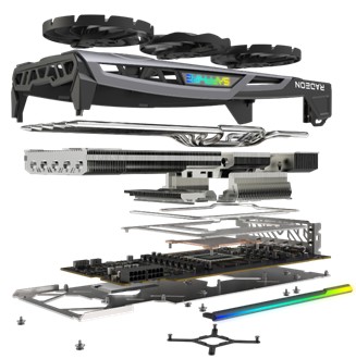 Das NITRO+-Feature Free Flow wurde mittels einem modernen Wave Fin Design verbessert und mit einem innovativen V-förmigen Fin Design zur GPU-Kühlung gekoppelt. Wenn der Wind in das Lamellenmodul hineinströmt, verringert das neue Wave Fin Design die Reibung, um das Windgeräusch zu verringern. Das Ergebnis ist ein ruhigeres Gamingerlebnis. Das V-förmige Fin Design auf dem Grafikprozessor beschleunigt und zentralisiert ebenfalls den Luftstrom um den Grafikprozessor herum, um die Wärme effizient abzuleiten und so niedrigere Temperaturen zu erzielen.