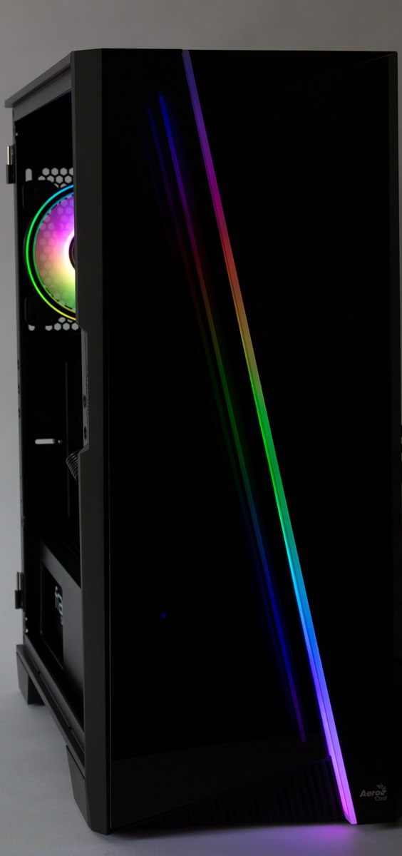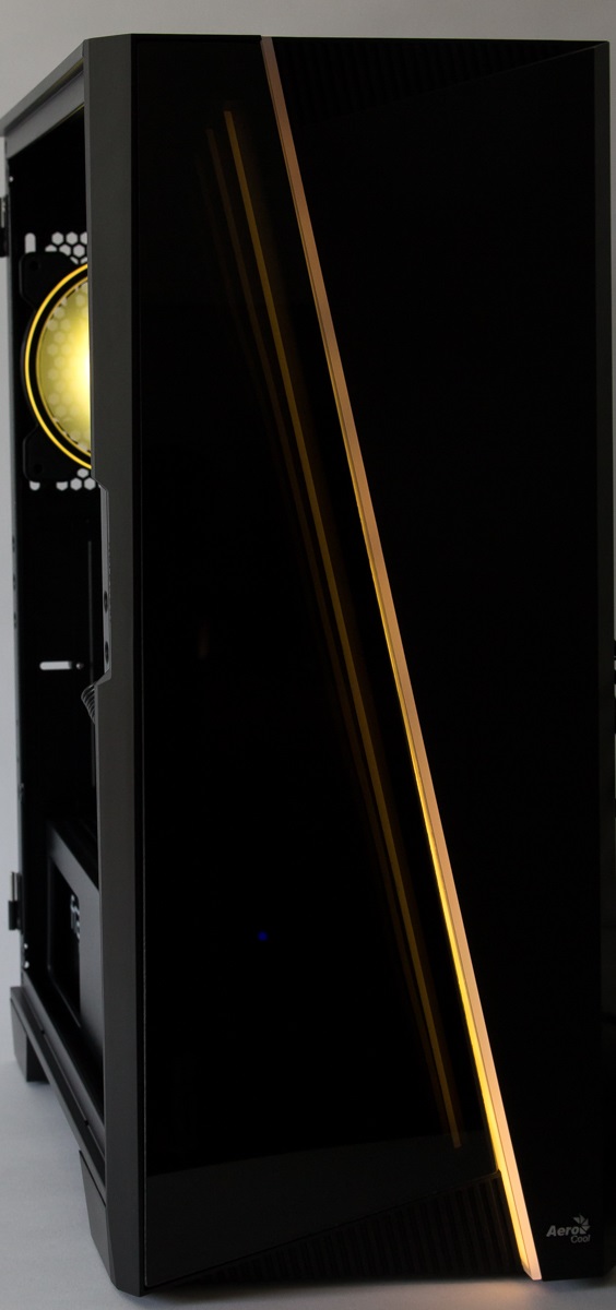 Die Beleuchtung kann entweder über das Gehäuse oder ein kompatibles Mainboard gesteuert werden. Möglich sind diverse Farben und Modi. Dort wird auch der Infinity-Effekt das erste Mal sichtbar. Die Beleuchtung wird „unendlich“ oft gespiegelt und es sieht so aus, als ob die Beleuchtung weit ins Gehäuse ragt, obwohl dies natürlich nicht der Fall ist. Dies sieht optisch ansprechend aus, allerdings blieb ein großer WOW-Effekt bei uns aus.