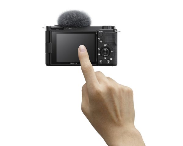Die ZV-E10 hat ein videofreundliches Design und mit nur circa 343 Gramm3 eine äußerst leichte Bauweise. Die Kamera ist mit einem seitlich aufklappbaren LCD-Display ausgestattet, wodurch externe Mikrofone einfach oben auf der Kamera angebracht werden können. Das vereinfacht die Handhabung und Benutzer können das Display im Selfie-Modus und aus hohen sowie tiefen Winkeln gut sehen. Neben dem praktischen Display verfügt die ZV-E10 über eine Reihe weiterer benutzerfreundlicher Merkmale, die speziell fürs Vloggen entwickelt wurden. Dazu gehört beispielsweise eine neue Foto-/Video-/Zeitlupen-/Zeitraffertaste an der Oberseite der Kamera, über die Nutzer mit einer einfachen Berührung den Aufnahmemodus wechseln können.