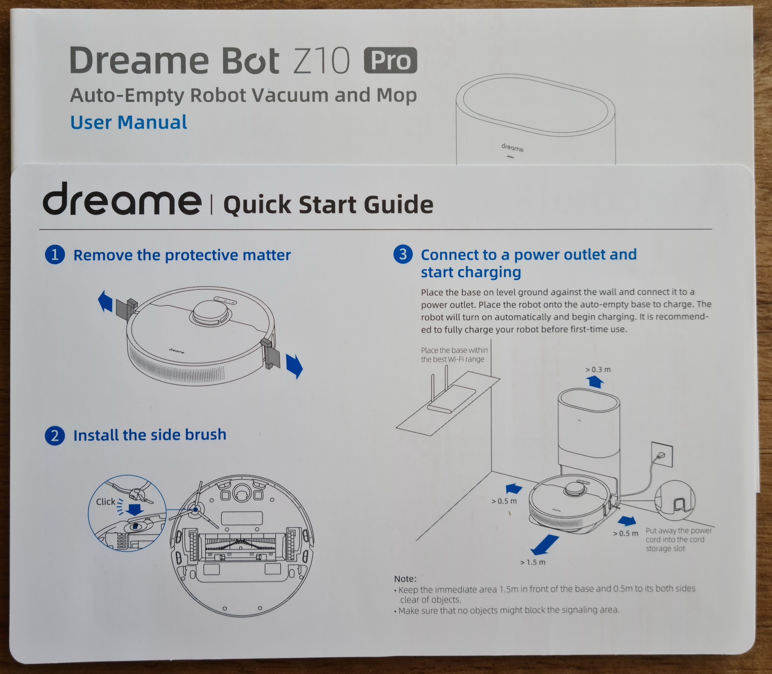 Das Wischtuch einzusetzen ist etwas nervig, da man es an drei Stellen einfädeln muss. Das dauert deutlich länger als bei den durchgängigen Wischtüchern, wie sie Roborock einsetzt. Eine kurze Anleitung erläutert die kinderleichte Inbetriebnahme des Saugers, welcher bei uns allerdings direkt ein Zwangsupdate verlangte. Die Staubbeutel sind vier Liter groß, immerhin legt Dreame hier zwei Stück bei.