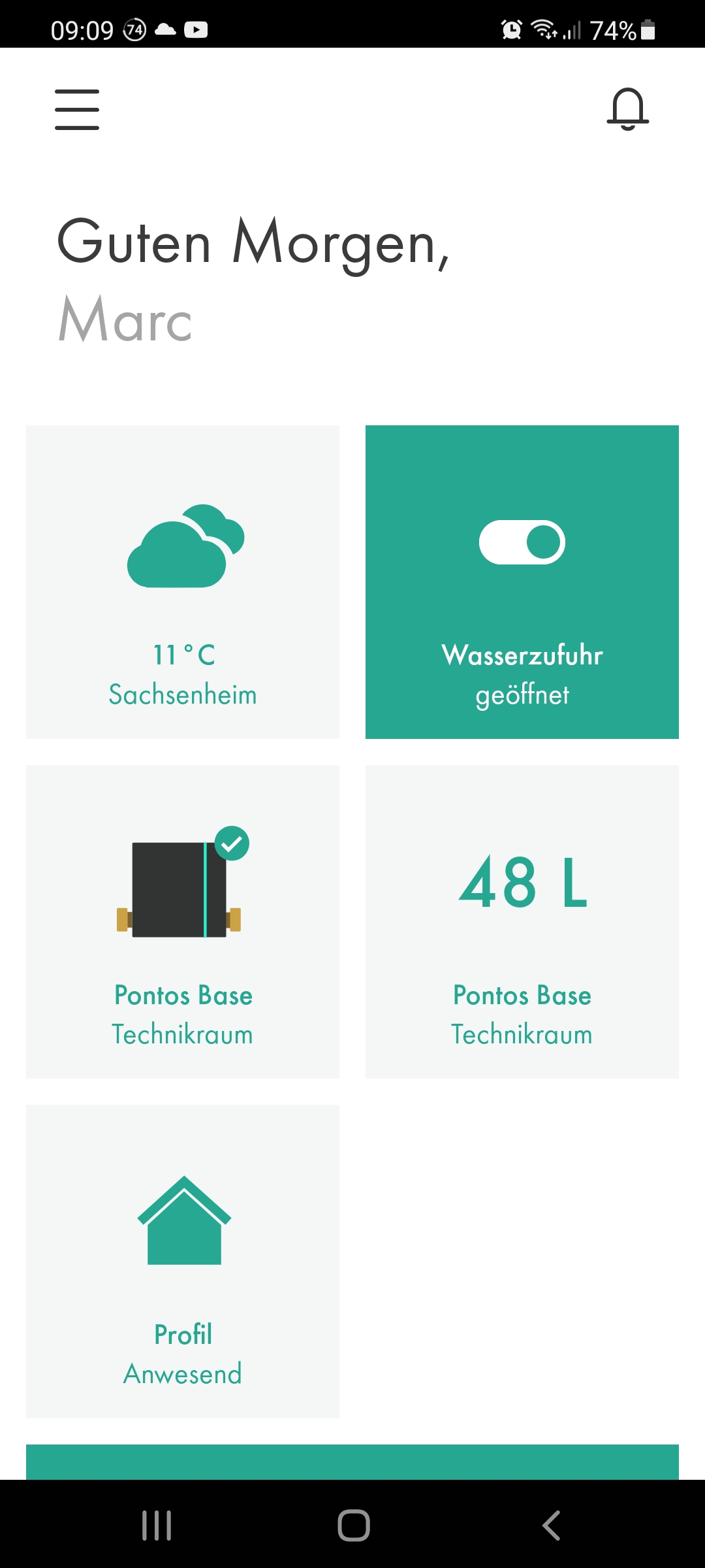Dann macht die pontos im Keller zu. Mit dem Handy öffnen wir dann wieder die Wasser Zufuhr und warmes Wasser kommt wieder.