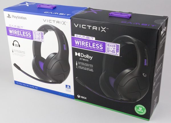 Das Victrix Gambit Wireless Gaming-Headset sollen einen klaren Sound und beste Ortung von Gegnern in Spielen liefern. Bei der Xbox/PC-Version wird zudem Dolby Atmos und bei der Playstation-Version 3D-Audio unterstützt. Die Ohrpolster aus Kunstleder sollen auch bei längerem Tragen komfortabel sein und zudem Außengeräusche dämpfen. Das vorhandene Mikrofon dient der Kommunikation mit Mitspielern, kann aber auch weggeklappt werden, wobei es sich automatisch stumm schalten soll. Verschiedene Buttons am Headset ermöglichen direkte Einstelloptionen ohne das Aufrufen einer Software.