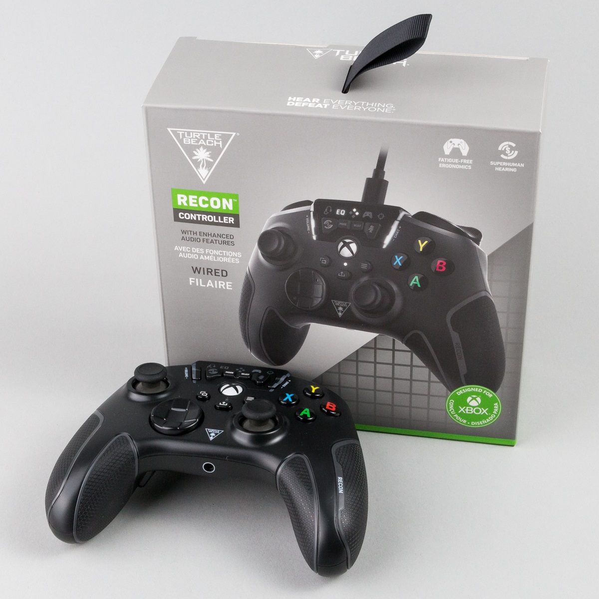 Der Hersteller Turtle Beach ist vor allem für seine Headsets bekannt. Mit dem kabelgebundenen Recon Controller für Xbox und PC wagt der Hersteller einen Abstecher in weiteres Gaming-Zubehör. Beim Controller wurden daher auch viele Audiofeatures eingebaut. Vorhanden sind verschiedene Audio-Voreinstellungen, Mikrofon-Monitoring und das sogenannte „Superhuman Hearing“. Als weitere Features stehen ein Pro-Aim-Focus Modus und Zusatztasten auf der Rückseite zur Verfügung. Es lassen sich zudem bis zu vier Profile anlegen. Mit diesen Eigenschaften dringt er in Gebiete vor, die bei Microsoft dem Elite Controller vorbehalten sind.
