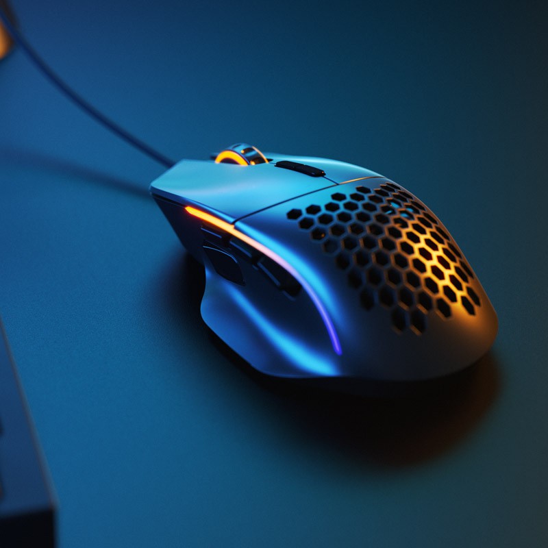 Dank der ergonomischen Form und der innovativen, austauschbaren magnetischen Seitentasten bietet die Glorious Model I Gaming Maus die optimale Mischung aus Komfort und Vielseitigkeit. Das Glorious-typische Wabendesign senkt das Gewicht auf bescheidene 69g und bringt die RGB-Beleichtung besonders zu Geltung.