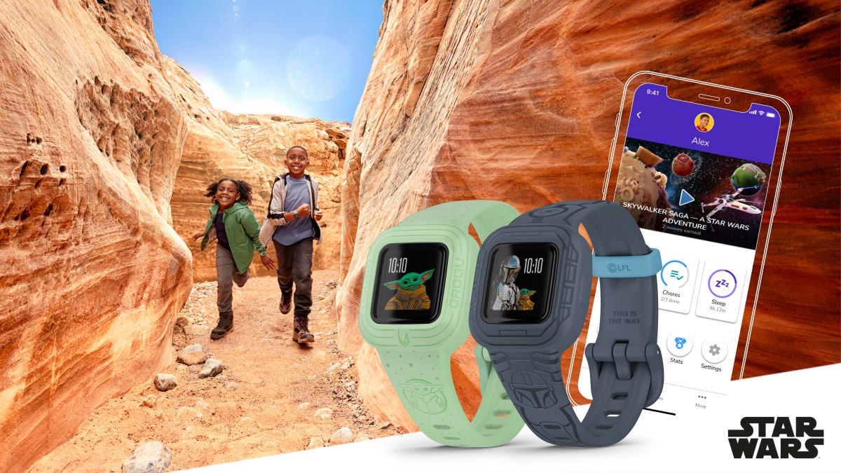 München, 04. Mai 2022 – Gleich zwei neue Modelle der vívofit jr. 3 von Garmin lassen die Herzen kleiner Star Wars-Fans höher schlagen: Die robusten, wasserdichten Aktivitätstracker für Kinder verfügen über ein farbenfrohes Display mit speziellen, von der The Mandalorian-Serie inspirierten Designs. Mit im Gepäck haben sie das passende Star Wars-Abenteuer in der zugehörigen App, die von den Eltern verwaltet wird. Spielerisch werden Kinder so motiviert, sich 60 Minuten täglich zu bewegen. Mit einer Batterielaufzeit von bis zu einem Jahr kann Tag für Tag in die unendlichen Weiten der Galaxie eingetaucht werden, ohne den Tracker nachzuladen. Neben den Star Wars-Modellen sind auch zwei neue Garmin-Designs in Peach Leopard und Cosmic Black erhältlich. Sie kommen zusammen mit einer spielerischen Lern-App zu dem Thema Weltreise.
