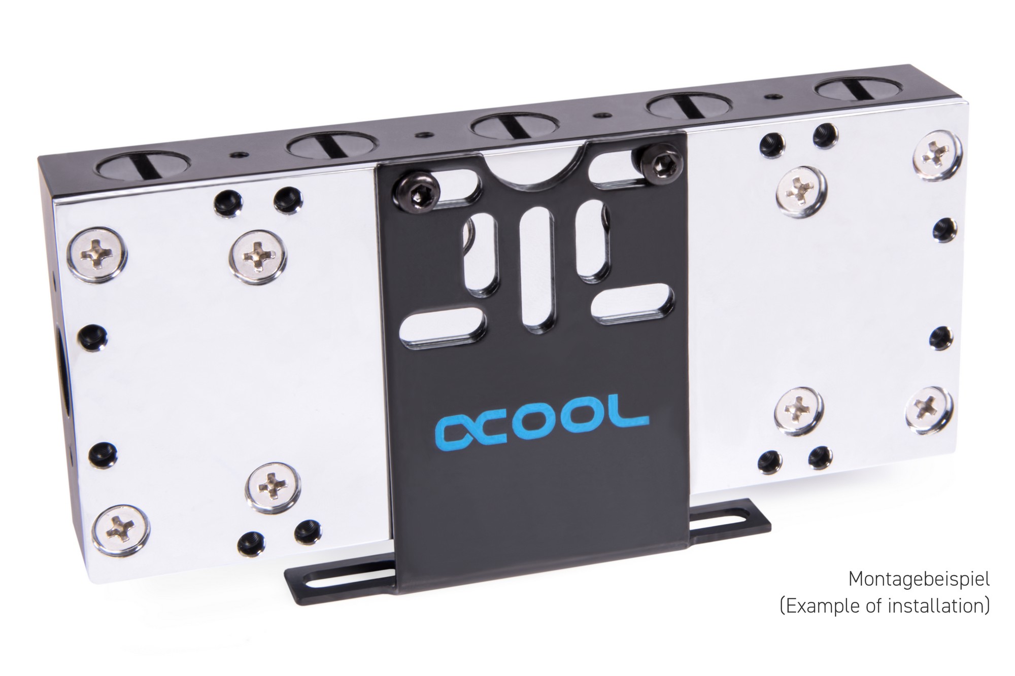 Die ES C5 Distro Plate verfügt über 22 Anschlüsse im G1/4″ Format. Aufgrund der hohen Anzahl an Anschlüssen ergibt sich eine Vielzahl von Konfigurationsmöglichkeiten. Alphacool empfiehlt hier die Verwendung der hauseigenen ES Schnellverschlusskupplungssets aus Nylon Material. Mithilfe dieser Schnellverschlusskupplungen können CPU-, GPU-Kühler sowie Radiatoren im Handumdrehen in den Wasserkreislauf eingebunden oder auch wieder entfernt werden.