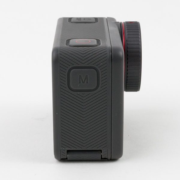 Ausgeliefert wird die Kamera mit einem bereits befestigtem Gehäuse und einer Halterung. Die Halterung kann entfernt oder durch eine andere Variante ersetzt werden, das Gehäuse wird dagegen für fast jeden Einsatzzweck benötigt. Die Linse steht etwas markanter raus als bei einer GoPro. Mit dem kleinen Display vorne und dem großen Touchdisplay auf der Rückseite besteht ansonsten aber kein großer designtechnischer Unterschied.