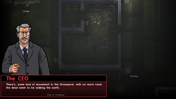 In Undead ist niemand sicher und es gibt viele Möglichkeiten, sich zu infizieren. Ein Insasse kann krank werden, einige andere können von einem unfreundlichen Untoten gebissen werden, oder ein Haufen infizierter Insassen kann direkt im Friedhof auferstehen (aka spawnen). Die Wärter haben keine Macht über die infizierten Einheiten, sie bewegen sich und handeln unabhängig im Gefängnis, bis sie aufgehalten werden. Insassen und Wärter können versuchen, sie abzuwehren, aber wenn sie scheitern, schließen sie sich der tödlichen Bande an! - Who you gonna call? Kopfgeldjäger!