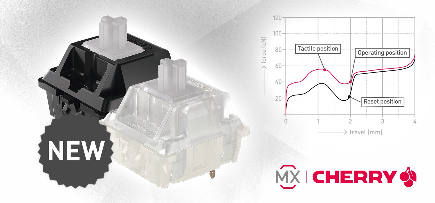 Der sogenannte MX Ergo Clear zeichnet sich durch eine besonders taktile Schaltcharakteristik ohne hörbaren Klick sowie eine vergleichsweise leichte Betätigungskraft aus. Damit positioniert sich das Modell zwischen dem klassischen MX Clear sowie MX Brown und ist die erste Sonderauflage eines Community-Schalters von CHERRY MX.