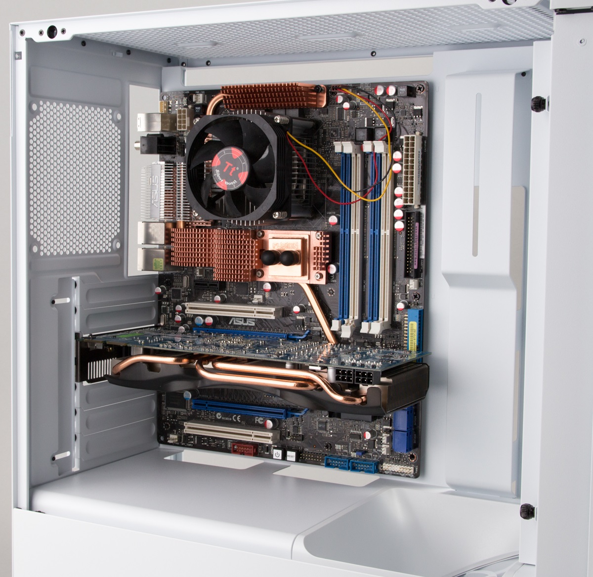 Die Grafikkarte darf maximal 365 mm lang sein. Ein CPU-Kühler darf eine maximale Höhe von 165 mm besitzen.