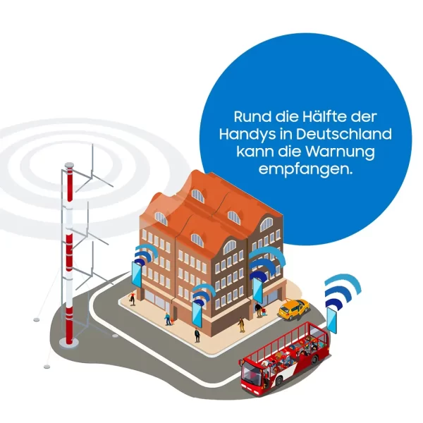 Die Funktion „Notfallbenachrichtigung für Mobilgeräte“ warnt Galaxy-Nutzer*innen vor Katastrophen wie Unwetter, Feuer oder Flut und vor Gefahren für die öffentliche Sicherheit. Die Anwendung nutzt die Cell Broadcast-Technologie, die beim bundesweiten Warntag am 8. Dezember 2022 erstmals zum Einsatz kommt. An diesem Tag werden deutschlandweit alle sogenannten Warnmittel getestet, darunter auch Sirenen, Radio, Fernsehen, digitale Stadtanzeigetafeln und bekannte Warn-Apps. Bei dem Test von Cell Broadcast soll eine Testnachricht alle Geräte erreichen, die mit der Technologie kompatibel sind und Empfang haben.