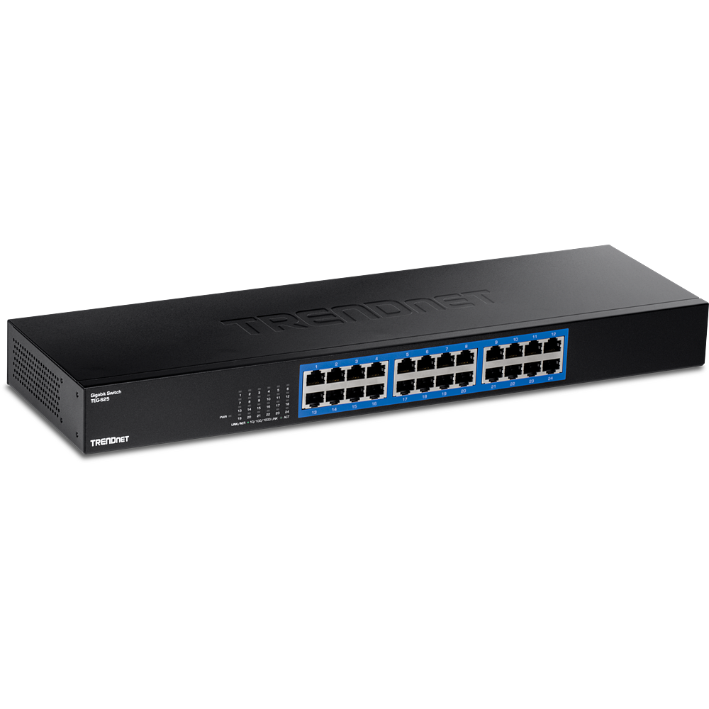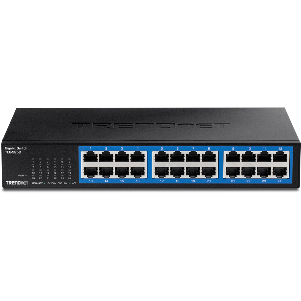 Die beiden neuen Gigabit-Switches von TRENDnet, der TEG-S25 und TEG-S25D, bieten hohe Bandbreitenleistung, Benutzerfreundlichkeit und Zuverlässigkeit für jeweils 24 Gigabit RJ-45 Ports. Mit Gigabit-Geschwindigkeiten und einer Gesamt-Schaltkapazität von 48 Gbit/s im Vollduplex-Modus wird die Effizienz des Netzwerks gesteigert und beseitigen Netzwerkstaus. Ein integriertes Universalnetzteil organisiert die Kabel, und Diagnose-LEDs helfen bei der Fehlersuche im Netzwerk. Diese beiden robusten Metall-Switche lassen sich per Plug-and-Play anschließen und bieten zuverlässige Hochgeschwindigkeits-Netzwerk-Konnektivität auf Gigabit-Niveau.