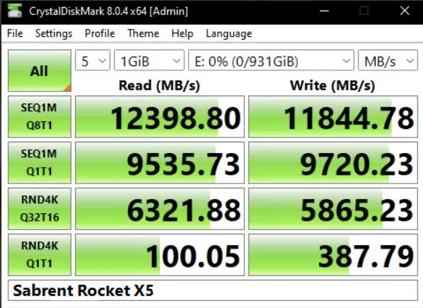 Here we have our new Sabrent Rocket X5 Gen 5 SSD being tested to our specifications.