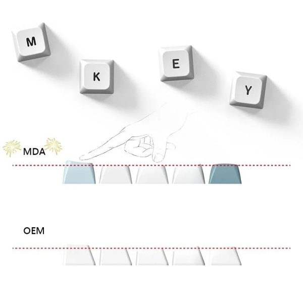 To create the most visually appealing keycap legends, the MKey features a dye-sublimation printing process on all five sides of the keycap. With this printing process, the MKey offers users with aesthetically pleasing keycaps that are durable through wear and tear. In addition, the MKey features MDA profile key-caps made with PBT for ultimate comfort and ease on the fingertips.