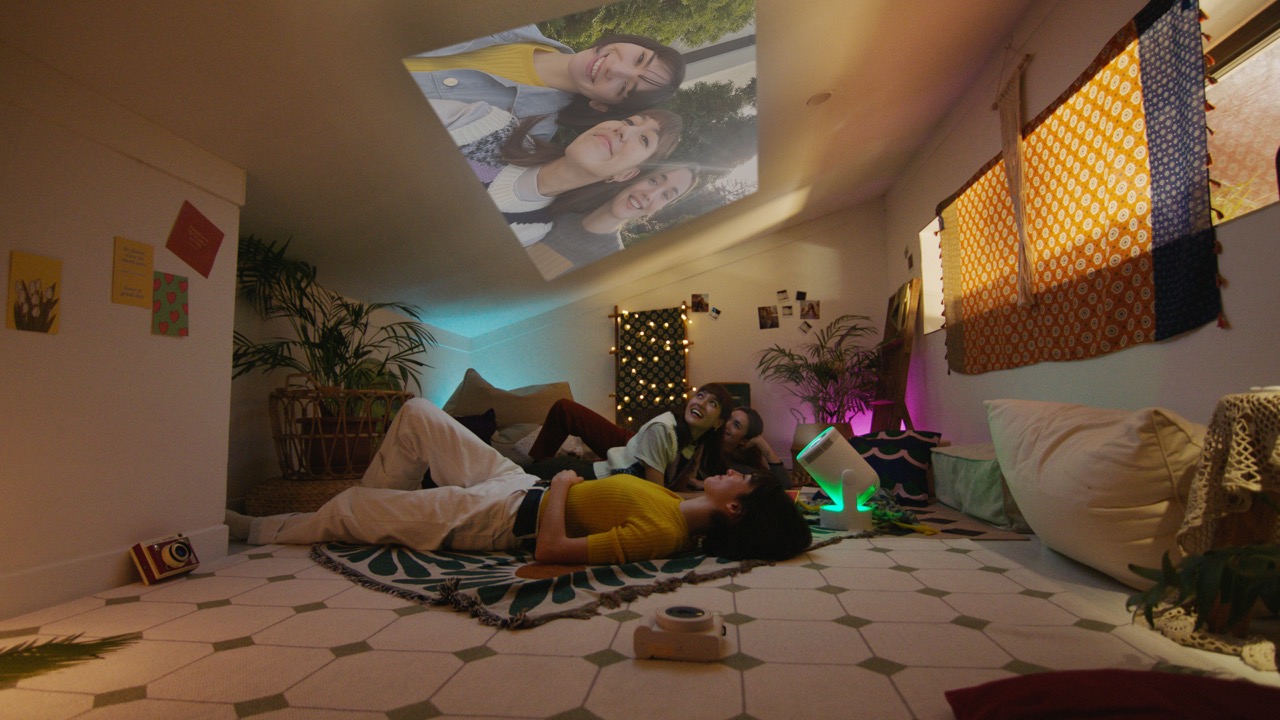 Damit lässt sich fast jede Wand oder Decke im Handumdrehen in eine Kinoleinwand verwandeln. Und wenn der Projektor nicht zum Film- und Serienschauen verwendet wird, sorgt er dank integrierter LED-Stimmungsbeleuchtung für eine gemütliche Atmosphäre im Raum.