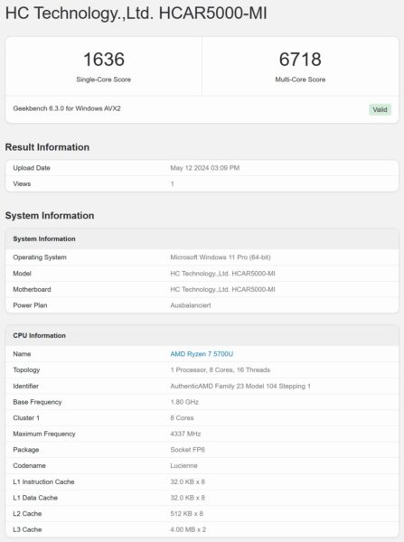 Beim Geekbench 6 konnten beim CPU- und GPU-Benchmark gute Werte erzielt werden. Die Ergebnisse liegen leicht über denen des Ouvis AMR5 Mini-PC der eine sehr ähnliche Hardware verbaut hat.
