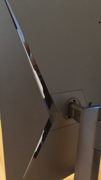 Die Verarbeitung des Monitors ist von guter Qualität. Das Gehäuse besteht aus robusten Materialien, die sowohl Langlebigkeit als auch Stabilität versprechen. Die Rückseite des Monitors ist ebenfalls sorgfältig gestaltet, mit einer ordentlichen Kabelmanagement-Lösung, die für ein aufgeräumtes Erscheinungsbild sorgt. Zudem wurde vom Hersteller eine blaue Rück- und Frontbeleuchtung verbaut. Diese setzt nachts bei Filmen oder Gaming-Sessions noch schöne Akzente in eurem Zimmer.