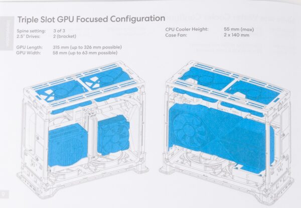 Dabei darf der Besitzer entscheiden, ob mehr Wert auf einen großen CPU-Kühler, eine Wasserkühlung oder eine überbreite Grafikkarte gelegt werden soll.